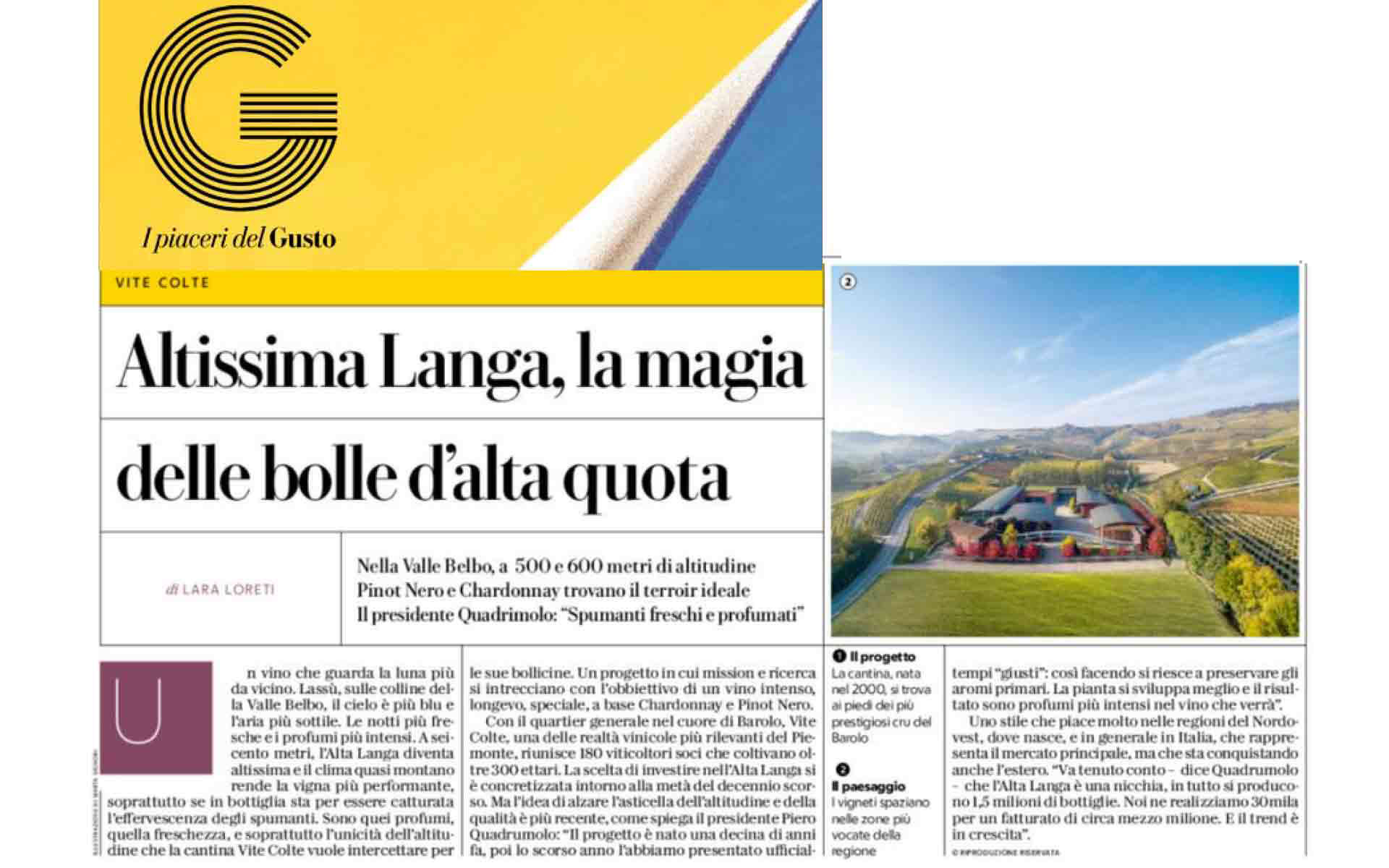Il presidente della Cantina Vite Colte, Piero Quadrumolo, parla del progetto dedicato ai Metodo Classico Alta Langa. di Rosanna Ferraro.